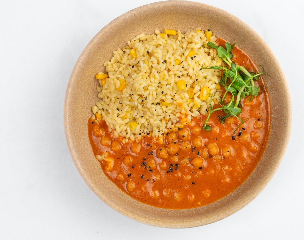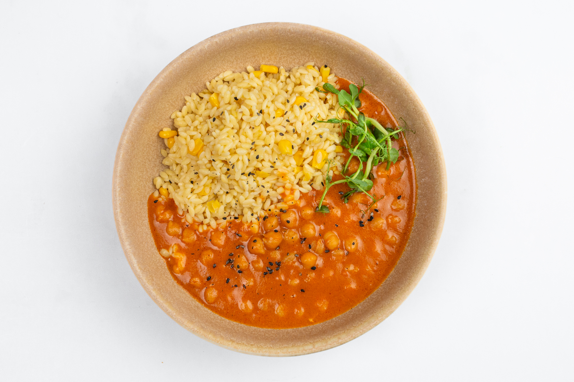 Zregenerujeme mrazenú papriku trikoloru v konvektomate po dobu 5 minút na 80 °C. To isté urobíme aj s mrazenou kukuricou.