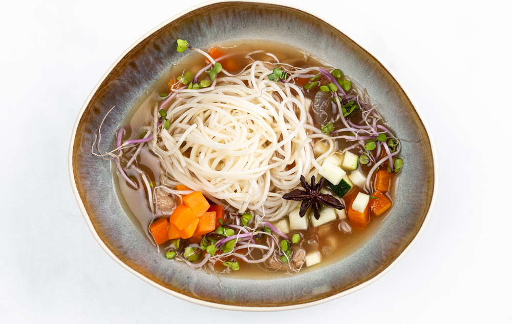 Tesne pred výdajom do polievky pridávame do vývaru čínske rezance a servírujeme.