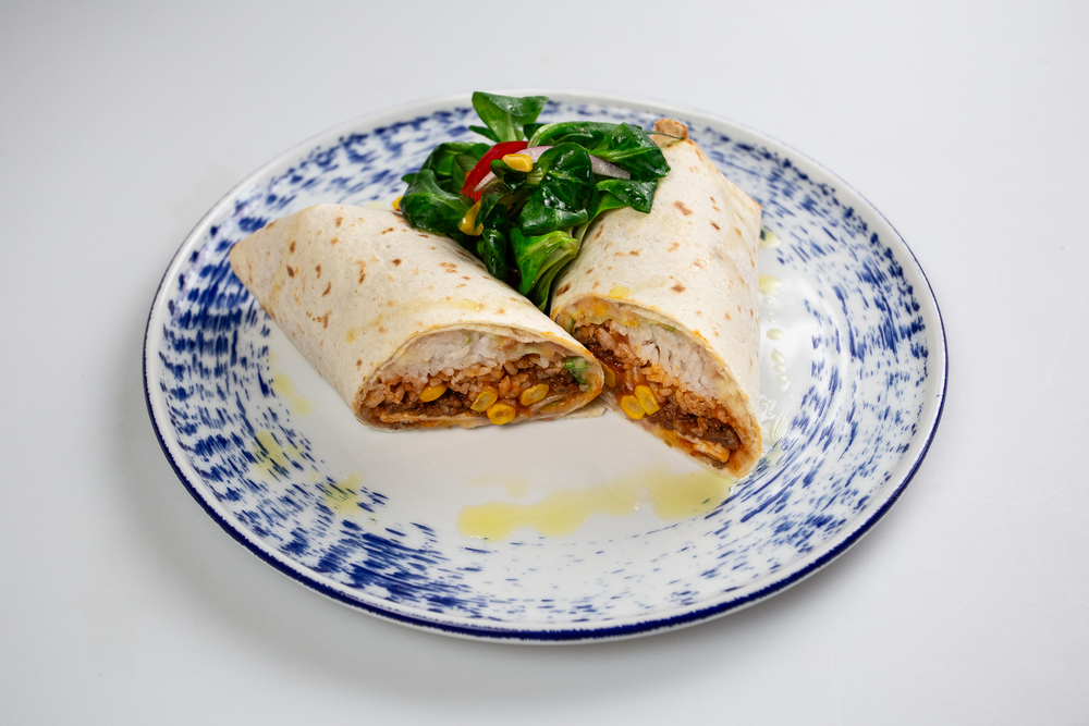 Plnenie: Tortillu prehrejeme (panvicu, gril atď.) a naplníme porciou zmesi a ryžou. Zasypeme strúhaným syrom. Pri balení dobre uťahujeme, aby náplň nevytiekla. Takto zabalenú tortillu pred výdajom opekáme nasucho z dvoch strán