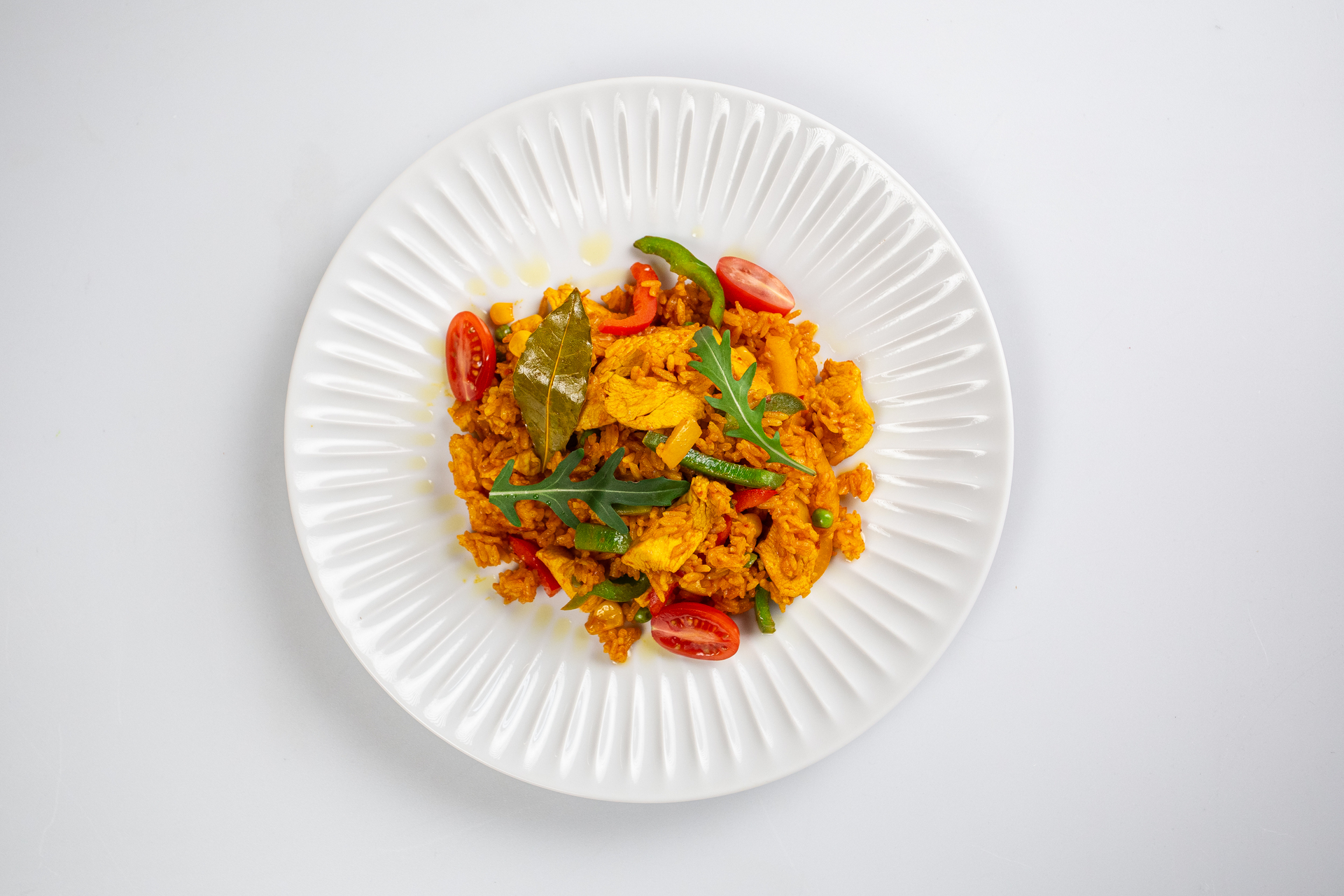Na oleji speníme cibuľku a cesnak. Pridáme na rezančeky/kocky nakrájané kuracie prsia a orestujeme. Pridáme kurkumu a bobkový list a všetko krátko zarestujeme. Zalejeme krájanými paradajkami a varíme do potrebnej konzistencie. Podľa potreby podlievame hydinovým vývarom.