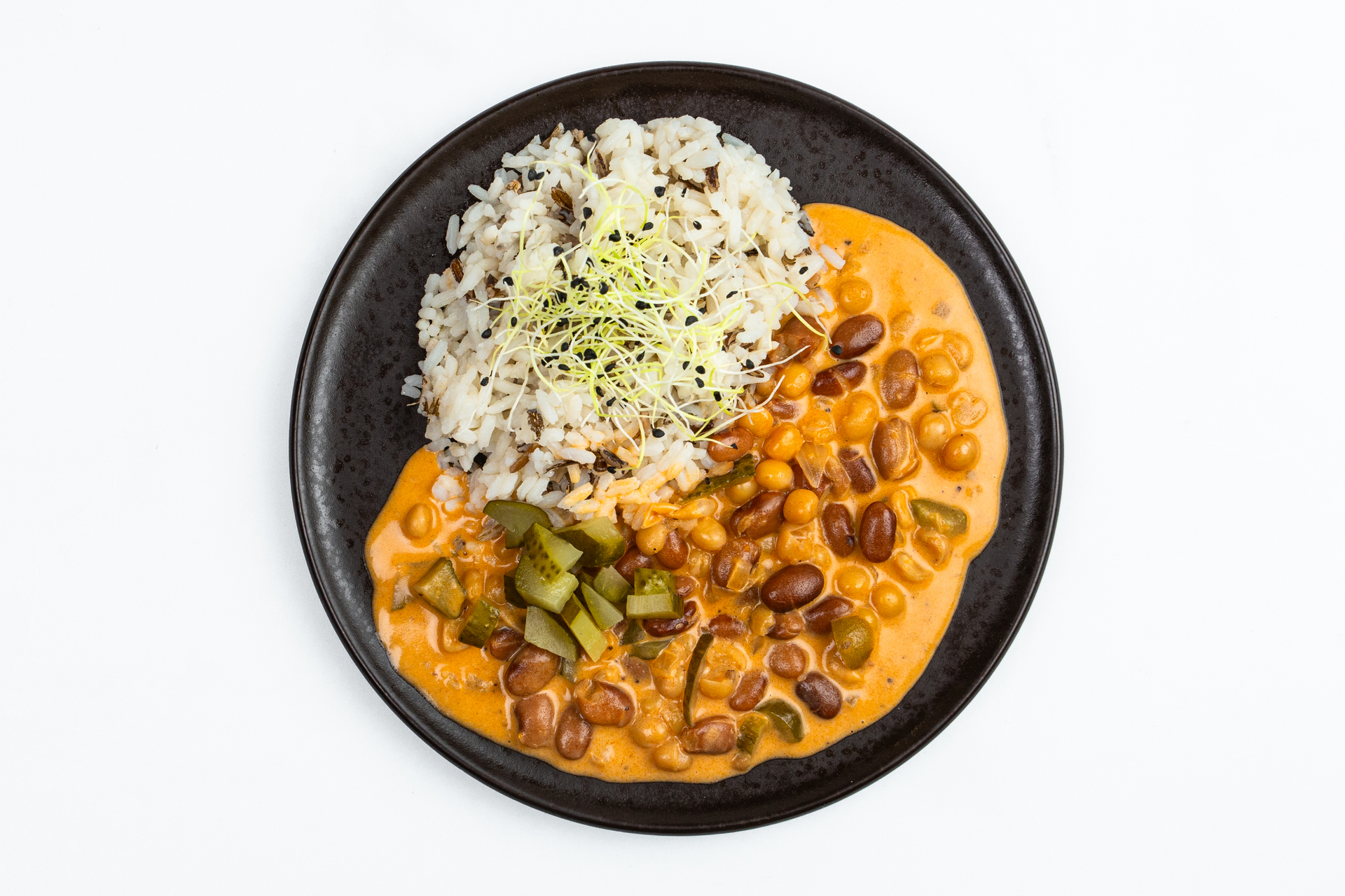 Na cibuľovom základe orestujeme cibuľu, cesnak, koncentrovaný paradajkový pretlak, údenú papriku a tymian, osolíme a pridáme pomleté sušené huby. Potom zalejeme zeleninovým vývarom a prevaríme cca 15 minút. V tejto fáze vložíme nakrájené kyslé uhorky a uvarené strukoviny do omáčky. Znovu prevaríme cca 10 minút a podľa potreby zahustíme svetlou zápražkou.